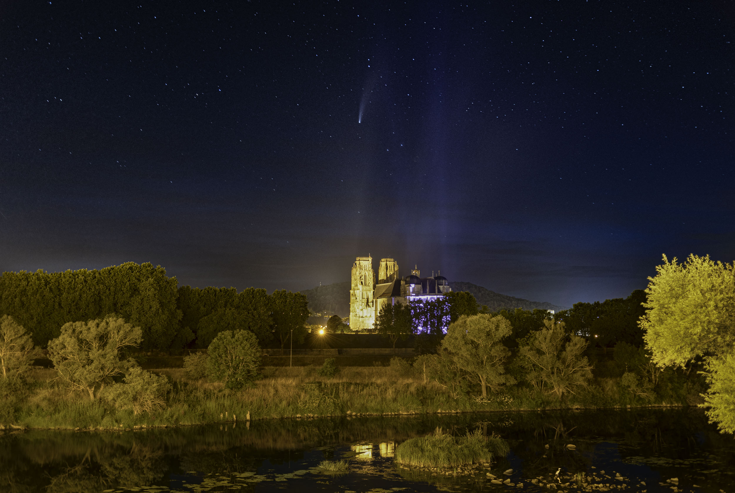 Toujours très tôt le matin le 13 juillet 2020, pour essayer de prendre cette comète au dessus de mon village, pas facile de prendre du recul et de voir l'ensemble.